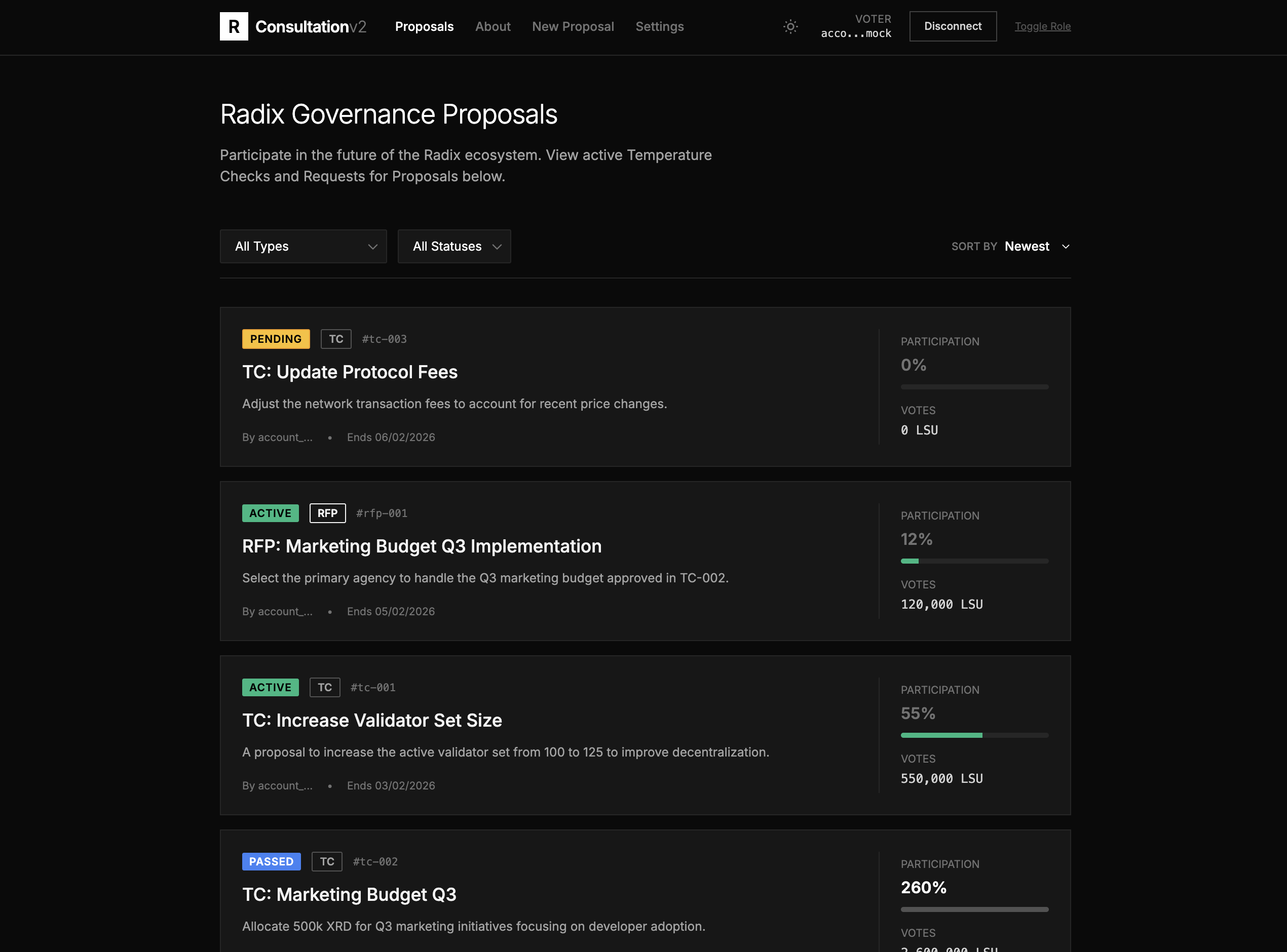 RFP info, options tally, voters, vote action